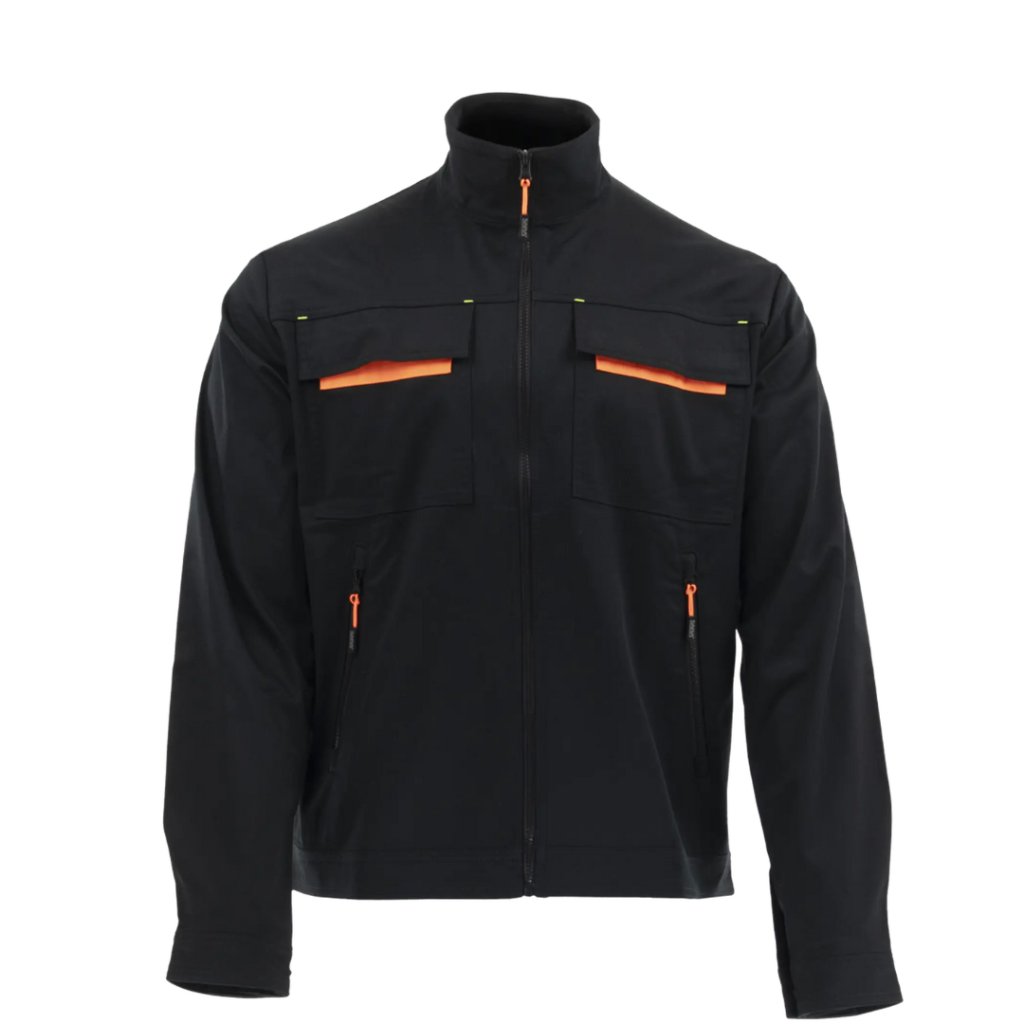- Spodní kapsy na zip a kryté náprsní kapsy zajišťují bezpečné uložení drobných nástrojů či mobilu.